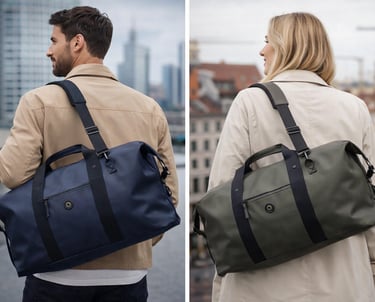 Duffelbager av lerret er populære for sin holdbarhet og avslappede stil. De er perfekte for begge som ønsker en solid bag som tåler litt slitasje.